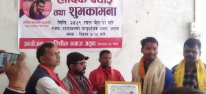 विराटनगर। विराटनगर जतुवा् स्थित राम जानकि मन्दिरकाे प्रगतिशील समाज जतुवा द्वरा आयाेजना गरिएकाे वधाई तथा शुभकामना कार्यक्रम बाट क्रिकेट खेलाडि ललित नारायण राजवंशीलाई सम्मान गरेकाे छ।क्रिकेट खेलाडी राजवंशी जतुवाकाे गल्ली कुचिमा क्रिकेट खेलदे अाएका राजवंशीले रास्ट्रिय तथा अन्तर्राष्ट्रिय स्तर नेपाल काे नाम कृतिमान कायम गरेकाेले राजवंशी सम्मानित भएकाे छ।यस कार्यक्रममा काेशि प्रदेश का पुर्व स्र्वास्थ्य मन्त्री जयराम यादवले अविर माला लगाई सम्मान गरेकाे हाेा प्रगतिशील समाज जतुवा का अध्यक्ष विनाेद यादव काे अध्यक्षतामा सम्पन्न भएका थिए। साेहि अवसरमा समस्त जतुवा वासि काे आयाेजनामा श्रीवाल मा० वि०जतुवाकाे प्रगणमा आज खेलाडी राजवंशी सहित अन्य क्रिकेट खेलाडिरहरू सम्मानित भएकाे छ।